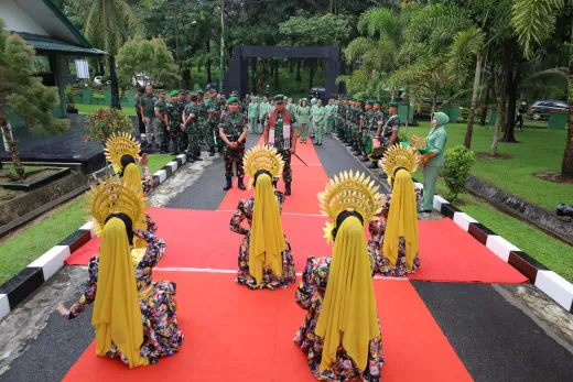 Setibanya di Mako Brigif 7/RR, Pangdam disambut Danbrigif 7/RR Kolonel Inf Dadang Armada Sari, S.I.P., dan menerima laporan satuan secara resmi. Pangdam kemudian dikalungi ulos sebagai bentuk penghormatan khas daerah. Dilanjutkan dengan laporan Pos I, hormat jajar, serta tarian sambutan yang mencerminkan kekayaan budaya dan semangat kebersamaan.