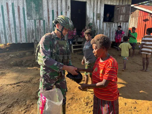 Teluk Bintuni – Satgas Pamtas Kewilayahan Yonif 642/Kps, Pos Mesna , yang dipimpin oleh Serda Dodi Artu Januelda melaksanakan kegiatan berbagi berupa sembako ke rumah-rumah masyarakat di Kampung Mesna, Distrik Moskona Timur, Kabupaten Teluk Bintuni, Provinsi Papua Barat.