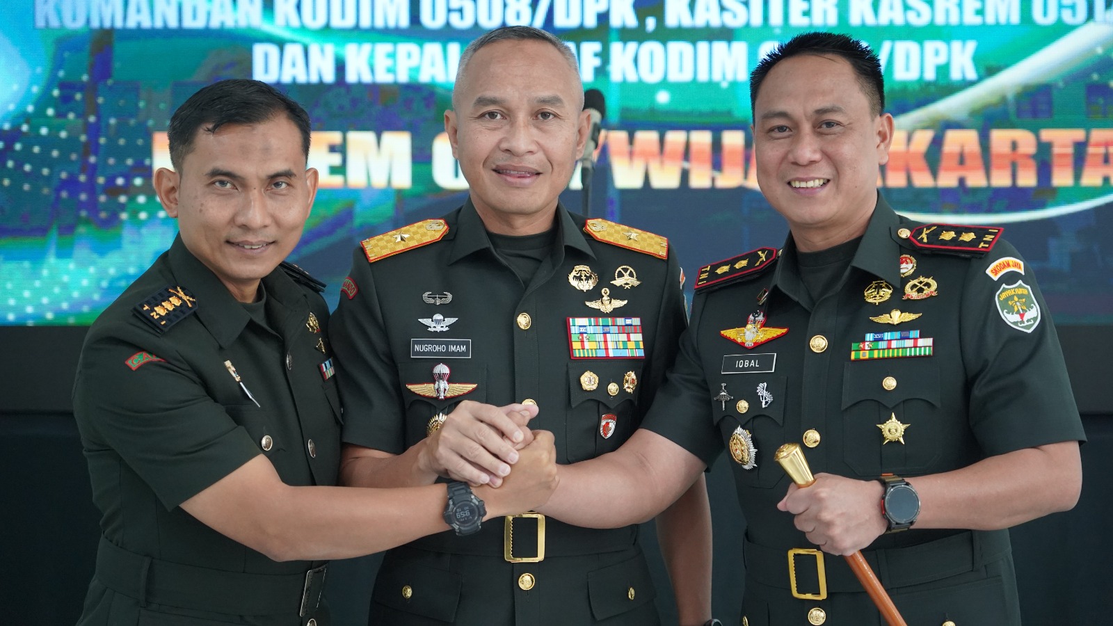 Dalam Sertijab tersebut, jabatan Dandim 0508/Depok diserahterimakan dari Kolonel Inf Iman Widhiarto, S.T., M.M., kepada Letkol Inf Triano Iqbal, S.I.P., M.Si. Sementara itu, jabatan Kasiter Korem 051/Wkt dari Kolonel Arm Muh. Saifudin Khoiruzzamani, S.Sos., resmi diserahterimakan kepada Kolonel Kav Nanak Yuliana, S.E., M.M. Selain itu, juga dilakukan tradisi penerimaan Letkol Inf Rendra Satrio Wibowo sebagai Kasdim 0508/Depok.