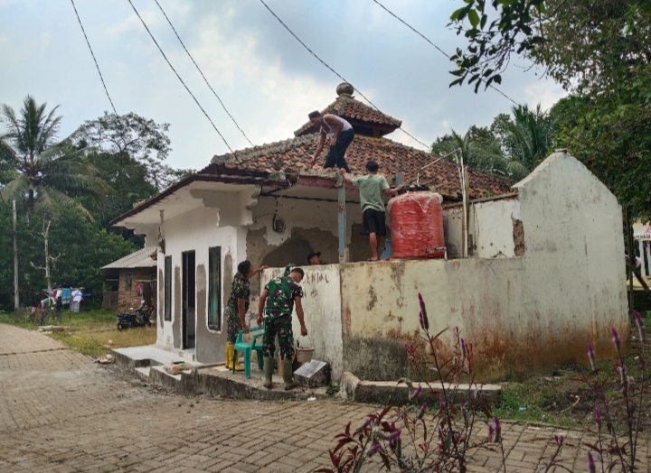 Pandeglang – Semangat kebersamaan dan gotong royong kembali terlihat dalam kegiatan Tentara Manunggal Membangun Desa (TMMD) ke-126 Kodim 0601/Pandeglang yang tengah berlangsung di wilayah Kabupaten Pandeglang. Pada kesempatan kali ini, anggota Satgas TMMD bersama masyarakat sekitar Kp. Balado Desa Pakuluran Kecamatan Cadasari Kabupaten Pandeglang melaksanakan kegiatan perehaban musholla yang kini progresnya telah mencapai sekitar 10 persen, Rabu (15/10/2025).